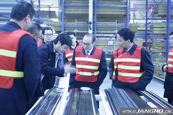 隨后,潘董事長一行與公司劉董事長等高層領(lǐng)導(dǎo)進(jìn)行了親切友好的座談。座談結(jié)束后,考察組一行在劉董事長的陪同下,前往江河幕墻建成并投產(chǎn)的全球幕墻行業(yè)最大的單體幕墻制造工廠。在國際一流、國內(nèi)領(lǐng)先的現(xiàn)代化工廠內(nèi),潘董事長一行細(xì)致考察了江河幕墻行業(yè)領(lǐng)先的技術(shù)設(shè)備、倉儲車間、自動化流水線及成品包裝養(yǎng)護(hù)等,對部分江河幕墻獨(dú)創(chuàng)的技術(shù)工藝進(jìn)行了仔細(xì)詢問并觀看了技術(shù)人員的現(xiàn)場精密測試。參觀過程中,潘董事長屢次對江河幕墻的工廠布局、技術(shù)設(shè)備、制造工藝等展露出贊賞的笑容。